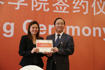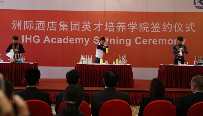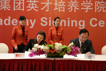 新葡萄8883官网AMG校长蒋永文分别与洲际酒店集团大中华区人力资源部营运总监许莹莹、洲际酒店集团云南区域总经理金伯顿共同签订《集团人才培养战略合作意向书》和《校企合作协议书》。许总监向蒋校长赠发“洲际酒店集团英才培养学院”合作证书。协议自今年开始,新葡萄官网50名酒店管理专业本科学生将进入“洲际英才班”订单培养学习,他们将成为洲际酒店集团旗下品牌酒店管理高素质人才。同时,洲际酒店集团还将为新葡萄官网酒店管理、烹饪与营养教育、旅游管理等专业的学生提供更多的学习专业知识、提高动手能力、增强管理水平的平台和机会,在校设置助学金,共同开发酒店管理教学课程和实训基地建设。