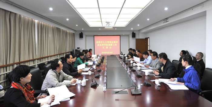 市人大常委会夏静副主任在会上作了讲话。她说昆明市人大常委会视察组今天到新葡萄8883官网AMG视察调研,是学习是对新葡萄8883官网AMG的进一步了解。新葡萄8883官网AMG经过几年来的建设发展,成为云南省学科门类最齐全的本科院校,成绩喜人使人振奋。今天来通过对实验室的参观和听取学校领导的介绍,让我们进一步了解了新葡萄8883官网AMG的办学定位和育人理念,了解了学校近几年来的总体建设发展,了解了学校特色专业的建设及学校国际交流合作工作,感受深刻收获颇多。夏静副主任祝愿新葡萄8883官网AMG在今后的建设发展中,不断向更高的办学层次迈进,为地方经济社会的建设发展,培养更多更好适应社会各行业需求的人才作出贡献。