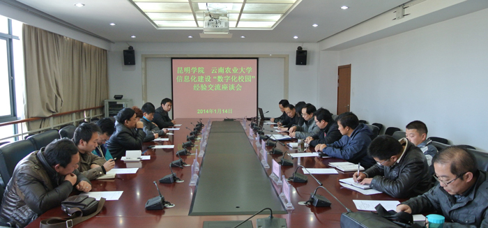 1月14日下午,云南农业大学纪委副书记郑永春一行8人到新葡萄官网进行信息化建设“数字校园”工作经验交流。新葡萄官网纪委副书记陈开祥、现教中心主任李海雁、计财处副处长王荣林、图书馆副馆长段芸、现教中心副主任张志红及相关技术负责人参加。会议由李海雁主任主持。