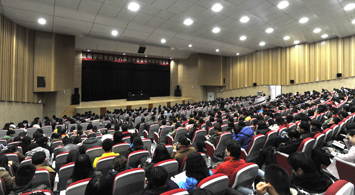 12月20日下午,新葡萄8883官网AMG在学生会堂举行党的十八届三中全会精神宣讲报告会。省委十八大精神宣讲团成员、省委高校工委十八届三中全会精神宣讲团成员、云南大学副校长杨泽宇教授做了专题报告。学校校长蒋永文、党委副书记孙勇、各党总支副书记、管理服务部门教职工党员、各院系师生党员代表共1200多人聆听了报告。报告会由孙勇副书记主持。