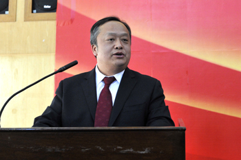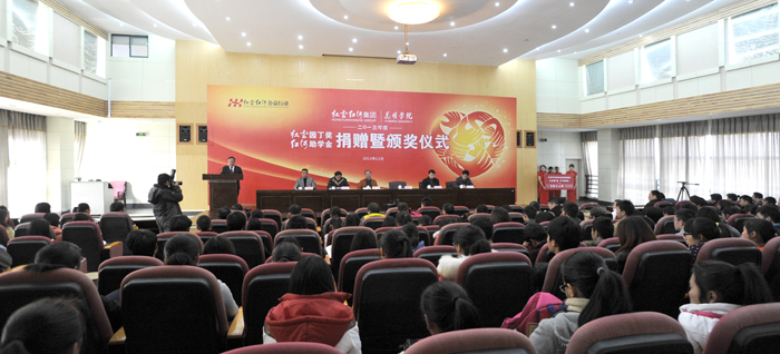 仪式上,蒋永文校长代表学校致辞。蒋校长首先向红云红河集团表示衷心的感谢,向学校获得奖励的教师和得到资助的同学表示热烈的祝贺。蒋校长说,学校始终高度重视和珍惜红云红河集团的支持,严格按照双方签订的协议和达成的共识,认真做好评选表彰的各项工作。现在,“红云园丁奖”、“红河助学金”已成为了广大师生竞相争报的校级重要奖项之一,极大地激发和调动了广大教师教书育人的积极性和创造性,鼓舞了同学们努力学习、攻坚克难、奋发向上、成长成才的青春热情,并把这种荣誉化作继续前进的不竭动力,在各自的工作和学习中不断取得新成绩,有力地推动学校教育教学的长足发展。蒋校长对获得奖励和资助的师生提出了殷切希望。希望获得奖励的教师,更加爱岗敬业,忠诚教育事业,不断增强教书育人的责任感和使命感,刻苦钻研提高业务素质,努力加强师德修养,更新人才培养观念,创新人才培养模式,把校园当家园建设,把学生当孩子培养,以人格魅力和学识魅力教育感染学生,做学生健康成长的指导者和引路人,以更大的热情和智慧追求真理,追求卓越,服务社会。希望受到资助的同学,心存感恩之心,牢记社会责任,加倍努力学习。坚持学习科学文化与加强思想修养的统一,坚持学习书本知识与投身社会实践的统一,坚持实现自身价值与服务祖国人民的统一,坚持树立远大理想与进行艰苦奋斗的统一,把勤奋学习作为人生进步的重要阶梯,把深入实践作为成长成才的必由之路,把奉献社会作为不懈追求的优良品德,以更加优异的成绩和更加全面的发展报效祖国和人民,以不辜负红云红河集团的支持和关怀,不辜负党和人民的希望。蒋校长最后表示,竭诚希望学校和红云红河集团进一步深化合作,优势互补,共同探索和开展卓有成效的合作,共同开创校企合作的新空间、新领域、新局面。