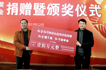 仪式上,红云红河集团领导代表集团向新葡萄官网捐赠奖助学金。孙勇副书记宣读了表彰决定及名单。与会领导为获奖教师、受资助学生颁发证书。