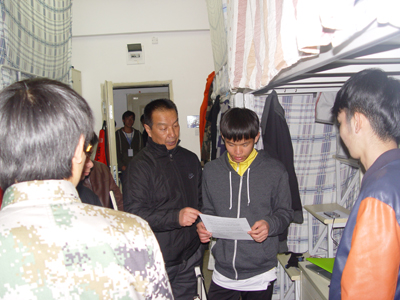 在检查过程中,李副校长和检查组成员亲切地与同学们交谈,询问学生和外来务工人员在学习、生活、工作方面情况,叮嘱注意冬季防火安全问题,同时认真听取学生对学校安全管理的建议和意见,现场办公解决学生和务工人员在用水、路灯照明方面的实际问题。
