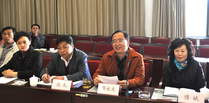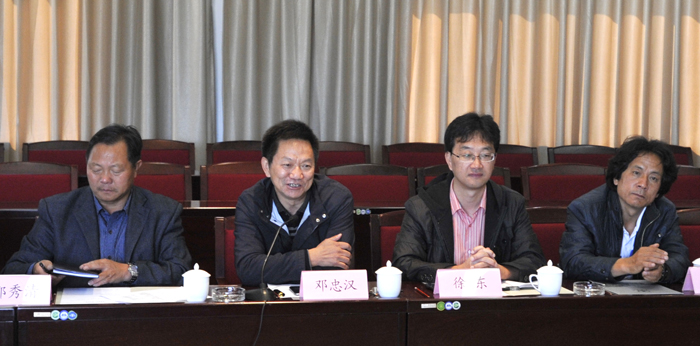 新葡萄官网校长蒋永文率教务处、经济学院、教师教育学院、社会管理学院、化学科学与技术系、数学系、物理科学与技术系、人文学院、外国语学院、信息技术学院、体育学院、美术与艺术设计学院、音乐学院、现代教育技术中心等部门负责人在办公楼502会议室与来宾进行交流座谈。
