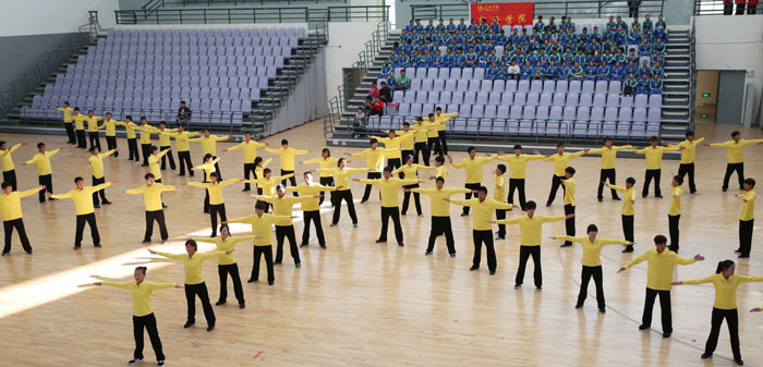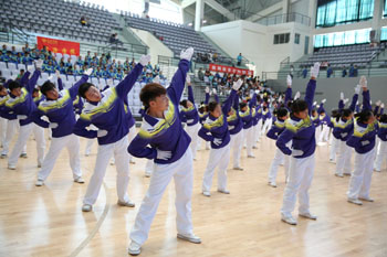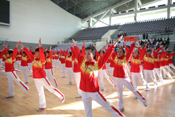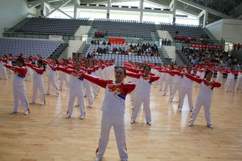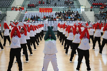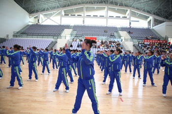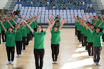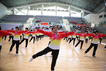 11月8日,以“运动、健康、向上、快乐”为主题的“2013年新葡萄8883官网AMG冬季运动会第九套广播体操比赛”在学校体育中心综合馆成功举行。学校党委副书记孙勇,副校长李翔到场指导。来自18个教学院系代表队近2000余名学生运动员参加比赛,教职工代表队进行了表演展示。