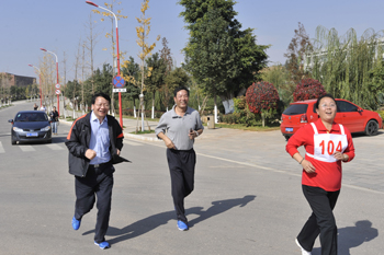 教职工代表队进行了广播操和太极拳表演。旅游学院、音乐学院、化学科学与技术系和生命科学与技术系以及医学院的同学们表演了团体操。