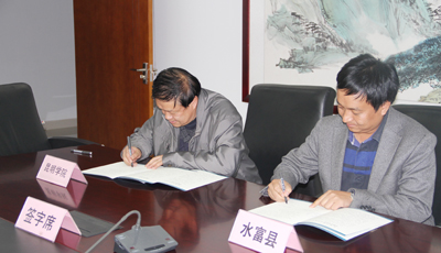 10月23日下午,在办公楼411会议室,新葡萄官网与昭通市水富县举行合作协议签字仪式。新葡萄官网党委书记陈世波、校长蒋永文、党委副书记孙勇和水富县委书记薛桂强、县长高绍周、县委副书记李跃波(学校选派挂职的新农村建设总队长)出席。水富县委办公室主任李廷鑫、县政府办公室主任向东、县教育培训中心主任王雪峰和新葡萄官网党委办公室主任吉庆华、组织部部长杨璐、校长办公室主任杨跃、财务处长陆志平、资产管理与设备处长解永刚、继续教育学院院长陈嘉参加了签字仪式。学校党委副书记孙勇主持签字仪式。