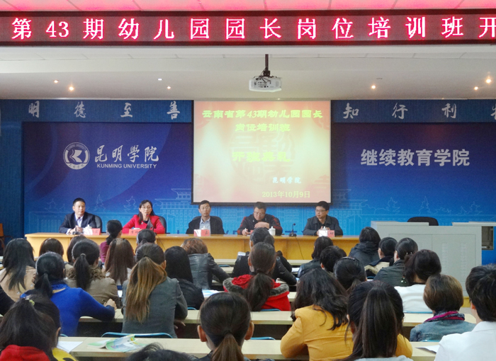 10月9日,云南省第43期幼儿园园长岗位培训班在新葡萄官网继续教育学院正式开班,昆明市教育局副局长李瑞林、师训处处长王建方,新葡萄官网继续教育学院院长陈嘉、副院长张培宏出席开班典礼并讲话。本期培训班共有来自全省的73名幼儿园园长参加,集中培训时间为3个月。