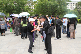 为庆祝第二十九个教师节,学校人事处、工会、体育学院于9月10日下午在聂耳广场联合举办2013年教师节教职工趣味运动会。学校党委副书记孙勇、李媛芬、副校长李翔、张寿国、刘海发、董建华等出席运动会开幕式。人事处处长杨斌主持开幕式,校工会常务副主席孙晓坤就运动会的内容做了简要说明,体育学院院长赵平宣布运动会开始。