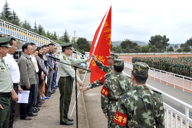 最后,在《中国人民解放军军歌》中,李荣部长宣布新葡萄8883官网AMG2013级新生军事训练开训。