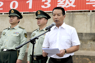 9月2日上午,新葡萄官网在田径运动场举行2013级学生军训动员大会。武警边防部队士官学校训练部部长李荣,新葡萄官网国防教育委员会副主任、副校长李翔及两校相关职能部门的领导、新葡萄官网各院(系)党总支副书记、带队辅导员、全体承训官兵和2013级4815名参训同学参加了动员大会。大会由李翔副校长主持。