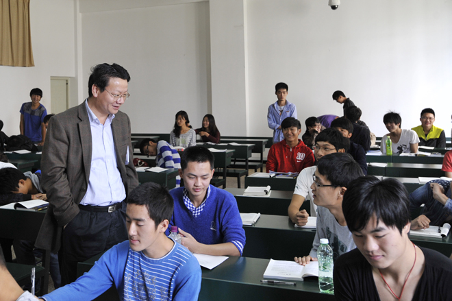 9月9日上午,新学年老生第一堂课开讲,学校党委书记陈世波等在校的校领导及教学督导成员分别深入各教学院系学生课堂,与同学们一起聆听了第一堂课。