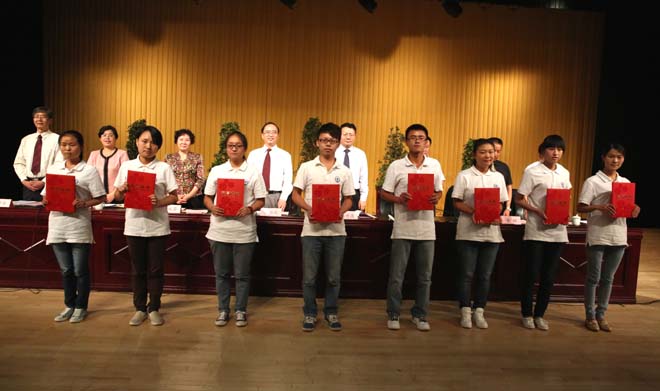 接着,校领导分别向科研获奖教师代表和学生代表颁奖。