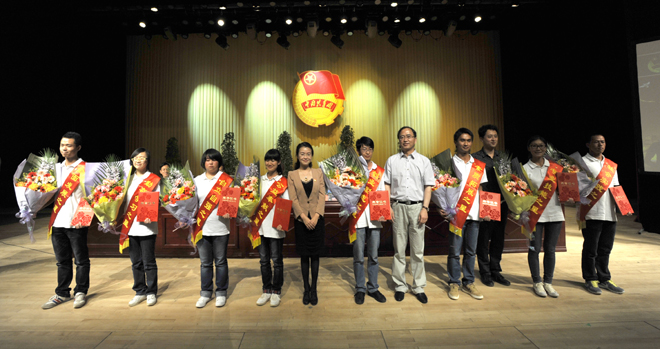 为了鼓励和促进学校青年学生全面发展,增强学生道德品质锤炼和技能特长培养,让学生成为品德好、有特长、肯奉献、能创新的高素质应用型人才,今年学校团委从新葡萄官网一万余名学生中评选出了9位最闪亮的“青春之星”。他们分别是:全面发展之星——张亮亮、勤奋学习之星——林一婷、自立自强之星——沈丽平、公益奉献之星——武承燕、创新发明之星——张雪涛、创业励志之星——李晓明、素质拓展之星——雷皓、专业技能之星——陶飞艳、社会实践之星——杨义,被授予“青春之星”荣誉称号的同学上台领奖并发表了获奖感言。