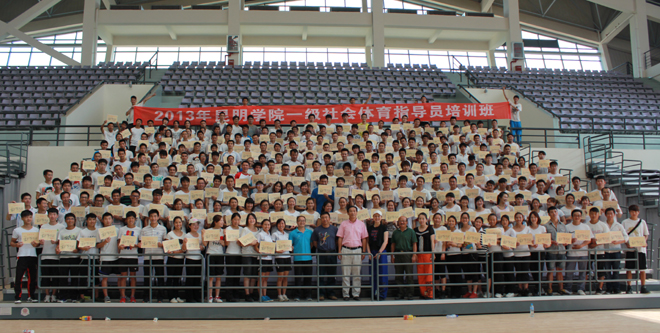 社会体育指导员培训工作是我国发展体育事业的一项重要举措,是推动我国群众体育活动、全民健身事业发展的重要力量。为进一步满足我省“十二五”群众体育发展需要,完善我省社会体育指导员队伍建设;进一步推进我市社会体育指导工作,构建“十二五”社会体育指导体系,逐步满足与完善群众体育文化生活。4月25日至5月2日,体育学院成功举办国家一级社会体育指导员培训班。本次培训面向我院部份老师和大三、大四学生,培训工作在惟行楼1501、博识楼2003和学校新建的体育馆进行, 坚持理论联系实际,学以致用。培训由云南师范大学教授、博士生导师饶远,云南师范大学教授、硕士生导师陈敏,云南民族大学教授、硕士生导师寸亚玲和新葡萄8883官网AMG体育学院教授周明、张群力,副教授何波等多位高级教师执教。培训课程有社会体育指导员的基本理论与方法、社会体育指导员的发展及管理、少数民族传统体育文化、技能培训和考试等。参加培训班学习的同学较系统地学习了社会体育的理论知识,掌握了一技之长。主要收获表现在:一是理论学习一丝不苟,探讨问题严肃认真,教学相长,共同提高。二是增长了相关专业技能;三是形成了文明、和谐的学习环境和氛围。经严格的理论考试和技能考核评定,有283名老师和同学取得了“国家一级社会体育指导员培训合格证书”。这次培训,为我省建立一支技能过硬,高素质、高水平的社会体育指导员队伍创造了条件,也拓宽了体育学院毕业生的就业渠道。