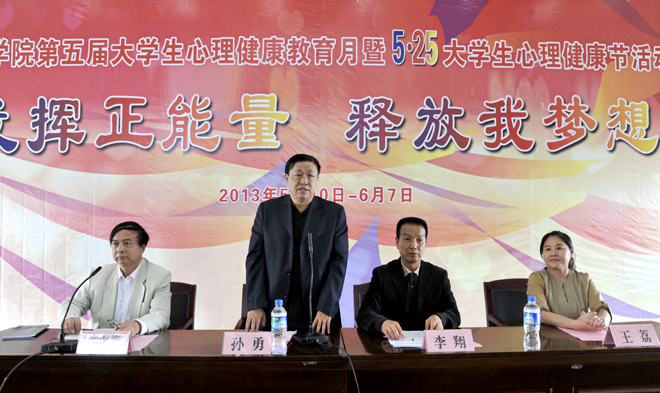 李翔副校长在启动仪式上作了讲话,他首先代表学校对第五届大学生心理健康教育月的隆重开幕表示热烈的祝贺。讲话指出:新葡萄官网的大学生心理健康教育月活动已经成为新葡萄官网学生工作的长效机制和品牌活动。在大学生中开展心理健康教育工作,宣传普及心理健康知识,进行心理咨询和心理疏导服务,帮助大学生健全心理素质,解决心理问题,是学校教育工作的重要内容。因此,今年的大学生心理健康教育工作还要在以下方面给予加强。首先,要正确分析形势,高度关注新葡萄官网心理健康教育工作,加大心理健康教育工作科学化、针对性,做好顶层设计。其次,要充分认识到大学生心理健康教育工作在大学生的健康成长成才中的重要性。各院系要准确分析学生心理状况,抓统筹、抓重点、抓落实,将责任落实到人,要依托大学生心理健康活动月打造精品,突显特色,扩大活动的影响力与吸引力。使新葡萄官网的心理健康教育呈现出集时代特色、人性关怀和发展活力于一身的良好势头,为同学们健康成长营造温馨和谐的环境。启动仪式上,学生工作部(处)部长刘宜萍介绍了“第五届大学生心理健康教育月”的具体活动安排。今年心理健康教育月活动的主题是“发挥正能量,释放我梦想”,时间从5月7日开始至6月7日结束,内容包括启动仪式、朋辈心理辅导员培训、户外素质拓展、专题讲座、心理电影展播、心理剧比赛以及闭幕晚会等。旨在进一步增强广大学生的心理健康意识,引导大学生传递心灵正能量,帮助大学生释放梦想、激发潜能,健康成长。
