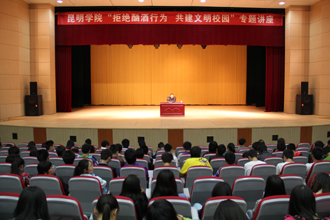 4月17日晚上,保卫处治安科科长张智益老师在学生会堂为各院(系)学生代表主讲了“大学生酗酒的危害”专题讲座。张老师通过分析省内外高校及新葡萄官网近年来发生酗酒行为而导致严重后果的相关案例,指出了大学生酗酒的种种危害。最后张老师介绍和分析了当前昆明市及新葡萄官网周边的治安形势,并希望同学们在以后的学习和生活中,对大学生酗酒的危害有足够的认识,从自身做起,带动周围的同学,树立良好的生活行为习惯,一起携手“拒绝酗酒行为 共建文明校园”。