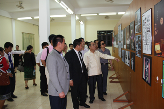 此次出访的主要目的,是落实今年2月陈书记率团访问老挝国立大学期间,与对方商谈的联合建立音体美专业的合作项目。经学校党政领导批准,由音乐、体育、美艺三个学院的党政领导和专业教师组成的代表团一行十人赴老挝国立大学。访问期间,体育学院赵平院长、周明副院长、音乐学院靳丽芬院长和美艺学院武新文院长、李正红副书记与老挝国立大学校方和老挝国立大学教育学院领导多次深入会谈和调研,全面细致了解了对方学校在音体美专业建设方面的现状和需求。在双方联合举办的“老挝国立大学•新葡萄8883官网AMG文化交流展示会”上,靳院长的独唱、武院长的现场书法展示、周砚馨老师的小提琴演奏,以及徐立宏老师表演的八卦剑和太极拳等赢得老挝国立大学师生的阵阵掌声和喝彩。文化交流展示结束后,国立大学领导和师生兴致勃勃地观看了美艺学院精心选送的师生美术与艺术设计作品展。此外,体育学院周副院长和徐立宏老师还为体育专业的师生上了四堂示范课,深得师生好评。新葡萄官网音体美三个学院均向对方赠送了礼品和部分器材。