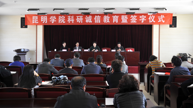 为了贯彻落实教育部关于科研项目管理、科研经费管理、科研行为管理三个意见的文件精神,进一步弘扬新葡萄官网优良校风,维护学术道德,严明学术纪律,规范学术行为, 3月6日下午,学校监察审计处、科研处联合在办公楼502会议室组织召开了新葡萄8883官网AMG科研诚信教育暨科研诚信承诺书签字仪式。学校党委副书记(纪委书记)李媛芬、监察审计处处长陈开祥、科研处处长王定康、科研处副处长吴瑛及近60位获国家、省部级科研课题的项目负责人参加会议,会议由李媛芬副书记主持。