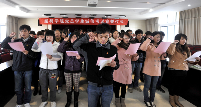 学校党委李副记讲话中强调:举行学生党员 “勤奋学习、诚信考试”宣誓仪式是学生党员学习贯彻党的十八大精神的具体体现,也是加强学风、强化考风建设的具体做法。学校纪委将协同党委组织部、校团委,以新葡萄8883官网AMG大学生廉诚学社为载体,通过开展宣誓仪式、党员学生挂党徽考试、发出倡议书等主题社团活动,不断增强广大党员学生敬廉崇洁,遵规自律和诚实守信意识,不断营造新葡萄官网风清气正,文明诚信的校园廉洁文化环境。她要求全体党员学生要做勤奋学习的表率、做诚信考试的表率、做文明礼貌的表率。