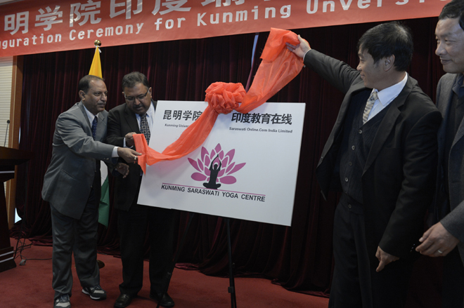 随后,Ganguli(甘古里)先生和赵平院长共同为“新葡萄8883官网AMG印度瑜伽中心”揭牌;加尔各答法学院院长Dr. S S Chaterji和孙晓坤副主席陪同揭牌。