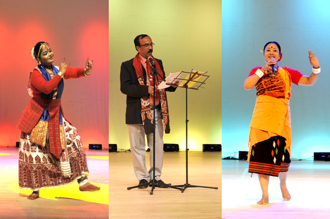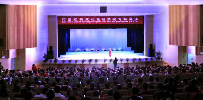 整个展演由“Ms Jahnabi Choudhury (舞蹈表演)”、“Mrs Jina Rajkumari (舞蹈、乐器表演)”、“Mr Biswajit Nandi (诗歌朗诵)”、“Mrs Achala Bhattacharjee (演唱表演)”等9个节目组成。通过Jahnabi Choudhury女士、Jina Rajkumari等印度艺术家的舞蹈、歌曲、乐器及诗歌朗诵表演,充分演绎印度艺术经典、展示印度风格,让新葡萄官网师生进一步了解到异国的悠远文化。同时,新葡萄官网李瑞琨和陈琳的葫芦丝与舞蹈《竹林深处》、郭海波的女声独唱《月下情歌》也同台表演。动听的山歌,优美的小调,唯美的意境,让印度友人了解到了我国民族文化的独特魅力。