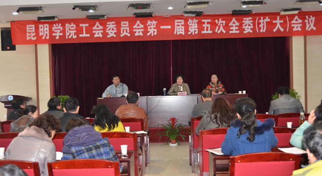 新葡萄8883官网AMG工会委员会第一届第五次全委(扩大)会议于1月9日上午隆重召开。全体教代会主席团成员,工会委员,女工委员,经审委员及各分工会主席,机关党总支工会组长,校工会办公室工作人员近70人参加会议,学校党委副书记,纪委书记,校工会主席李媛芬出席会议,会议由校工会副主席刘宇红主持。