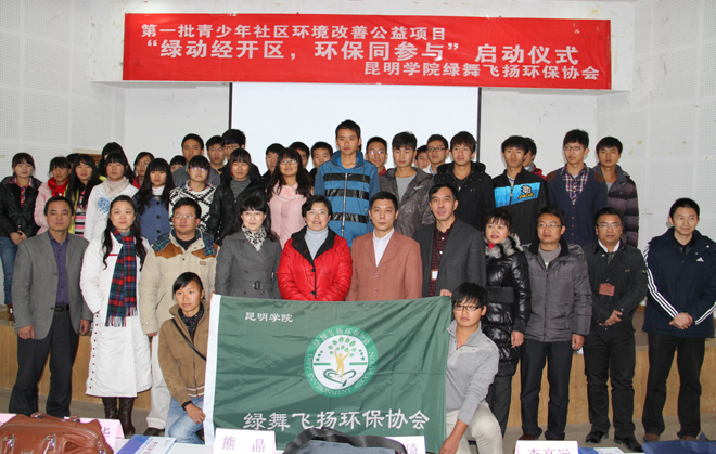 1月11日上午,新葡萄官网“第一批全国青少年社区环境改善公益项目”正式启动。学校熊晶副校长,省、市环境宣传教育中心,经开区环保局,校团委、经济学院相关负责人及“绿舞飞扬”环保协会指导单位学校昆明滇池(湖泊)污染防治合作研究中心领导和指导教师应邀出席,“绿舞飞扬”环保协会社团成员及青年志愿者参加启动仪式。启动仪式由学校“绿舞飞扬”环保协会副会长王光宇同学主持。
