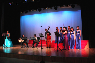 群体艺术研究所的工作方针是“实践为基石,科研促发展”。作为音乐艺术研究机构必须构建一个与之相配套的实验平台。在新葡萄8883官网AMG领导的大力支持下,今年3月成立了我省第一个专业化的室内乐团——新葡萄8883官网AMG室内乐团。通过乐团成员的不断努力,在较短时间内排练了一套综合室内乐作品。音乐会以综合器乐为基本框架,融合声乐、舞蹈等多形式的舞台表演。演出作品经过精心设计,曲目丰富,风格各异,如欧洲古典室内乐、中国民族室内乐以及极具现代感的爵士组合,受到观众的一致好评。
