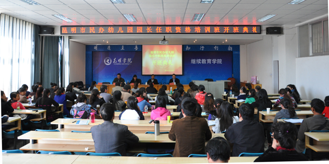 为进一步提高全市学前教育办学水平,尤其是提高民办幼儿园的办园质量,提升民办幼儿园园长的综合素质,经过一段时间的精心准备,昆明市民办幼儿园园长认知资格培训班12月3日在新葡萄官网继续教育学院正式开班,来自全市各地的近100名民办幼儿园园长参加了开班典礼。市教育局李瑞林副局长,新葡萄官网继续教育学院陈嘉院长和张培宏副院长出席开班典礼。开班典礼由昆明市教育局师训处王建方处长主持。