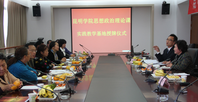 为认真贯彻落实《新葡萄8883官网AMG关于进一步加强和改进思想政治理论课建设的实施意见》(党发【2012】30号),加快新葡萄官网思想政治理论课实践教学基地建设,经过前期的筹备,11月9日下午,新葡萄8883官网AMG思想政治理论课实践教学基地授牌仪式在办公楼411会议室举行。学校党委李媛芬副书记、思政部党政领导及相关教师和云南师范大学西南联大博物馆、省侨联南侨机工暨眷属联谊会、昆明市聂耳墓文物管理所、昆明市第六污水处理厂四家单位负责人出席了授牌仪式。会议由思政部高鸣副主任主持。