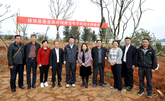 11月16日上午,新葡萄官网在观物山上举行禄劝县捐赠树木移载仪式。