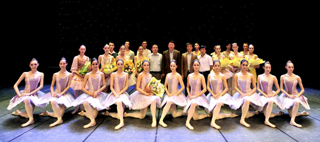 辽宁芭蕾舞团此次来昆的70余位演员为新葡萄官网师生呈现了一场品味高雅、美轮美奂的芭蕾盛宴。演出在唯美浪漫的经典芭蕾舞剧《仙女》中盛妆启幕,演员们用精湛的舞技精彩演绎了中外芭蕾舞的经典与现代之作。现代男子群舞《男人》阳刚雄武、活力四射;古典芭蕾舞剧《海盗》生动唯美、激情奔放;现代女子群舞《茉莉花》优雅曼妙、赏心悦目;精选节目《芭蕾集锦》节奏明快、酣畅淋漓;情景芭蕾《江山美人》如歌如泣、激昂悲壮;现代二人舞《无欲无虑》动感协调、引人入胜;世界经典舞剧《天鹅湖》双人舞揭示了对生命,对爱情的无限憧憬;而中国芭蕾舞剧《二泉映月》中的经典桥段《梦中追月》成功的将听觉向视觉转化,实现了一次文化层面上的中西合璧,美不胜收、感人肺腑。整台演出精彩纷呈、高潮迭起,赢得了全场师生经久不息的热烈掌声。最后,演出在辽宁芭蕾舞团全体演员带来的原创作品《芭蕾风采》中徐徐落下帷幕。演出结束后,陈世波书记还亲切地与演员们合影留念。