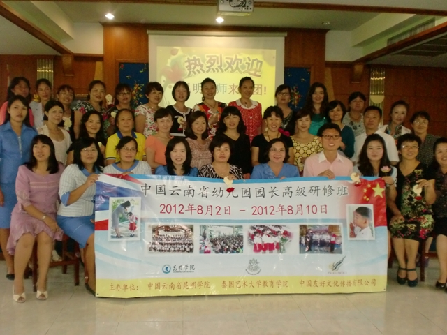 为发挥新葡萄官网服务地方经济社会发展的作用,学习周边国家学前教育的办学理念和模式,提高幼儿园园长的管理水平,推进教育国际交流合作和我省学前教育的改革发展,8月2日至10日,新葡萄官网国际交流合作处、教师教育学院和泰国Silpakorn大学(艺术大学)教育学院、中国友好文化传播有限公司(泰国)联合举办“中国云南省幼儿园园长高级研修班”。来自昆明市和8所地州幼儿园的32位园长在新葡萄官网教师教育学院院长唐敏带领下考察了泰国Silpakorn大学(艺术大学)教育学院、泰国艺术大学附属幼儿园、约瑟小学及幼儿园、巴西龙成学校等教育机构。泰国艺术大学教育学院副院长为考察团举办了关于学前教育的发展及管理专题学术讲座。