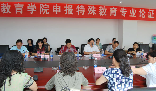 7月10日教师教育学院在行政楼311会议室召开了《特殊教育专业本科人才培养方案(讨论稿)》的专业论证会,学校副校长罗明东、教务处处长沈凡,省教育厅基础教育处副处长詹显良,昆明市盲哑学校校长杨志成、昆明市新萌学校校长任慧、云南省华夏中等专科学校校长李鹥,云南省聋儿康复学校校长杨贵莲,昆明医科大学第二附属医院治疗师唐欣等专家出席论证会。教师教育学院全体党政领导及教研室主任和相关教师参与了论证会。