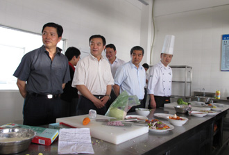 王副主任在新葡萄官网党委书记梁晓谷、校长陈世波等领导的陪同下,饶有兴致地参观了轨道交通实验室、烹饪实验室、生物实验室等教学实验场地。王副主任边参观,边不停地询问实验室工作人员实验设备性能、功能,能否满足师生教学、科研需求等情况。