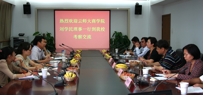 6月13日,云南师范大学商学院执行理事刘学民率领北京北投集团人力资源部,商学院人力资源部、教学事务部等部门负责人一行5人到新葡萄官网考察学习。新葡萄官网副校长熊晶出席交流座谈会,校办、人事处、教务处相关人员陪同考察学习。