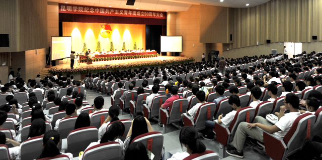 5月11日下午,新葡萄8883官网AMG纪念中国共产主义青年团成立90周年大会在学生会堂隆重召开。学校党委书记梁晓谷、校长陈世波、校党委副书记孙勇、李媛芬,副校长李翔、张寿国、熊晶、罗明东、刘海发、董建华,共青团云南省委学校部杨洲部长,共青团昆明市委书记周乐等领导出席了纪念大会;学校中层干部、各院系团总支书记、全体辅导员及受表彰的团员代表共1300余人参加了此次会议。大会由党委副书记孙勇同志主持。