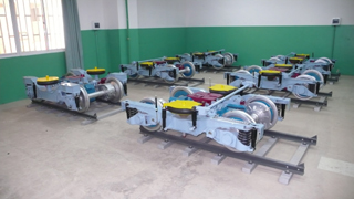 轨道交通车辆工程实验室包括动力转向架、受电弓、练功用转向架模型、直线电机模型、S700K型电动转撤机、地铁列车全自动车钩、缓冲器模型等设备。转向架模型仿照昆明地铁车辆制作(比例为1:2),结构外形与实物一致。其中的电机、构架、轮对、齿轮箱、轴箱、液压减震器、制动部件等均可自由拆装,学生可对转向架进行各种装拆试验。列车顶置式受电弓(比例为1:1),可正确演示受电弓的结构及动作原理,可使用压力空气实现升弓/降弓操作,能演示受电弓的调整方法。轨道交通学生可在实验室中获得对轨道交通车辆设备知识的感性认识,并实际训练对轨道交通车辆设备的维护维修动手能力。