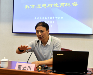 董云川教授首先以自己多年来研究高等教育和一名高校教师的切身体会为出发点,以如何办好一所有特色的大学为背景,提出了他对目前高等教育理想与现实的独特、冷静思考。讲座中董教授围绕观念引导行动、什么样的教育才是“对”的教育、高等教育中需要搞清楚的问题、教育中长期规划的焦点及教育分类的矛盾等展开论述,深入阐释了高等教育的本质就是探究高深学术、传播高雅文化、培养高级人才以及育人是大学的根本职能等观念。讲座中,董教授还对参加培训的管理和教学院系干部,提出了作为教育者和管理者,应该时刻保持一种理性,切忌出现“管理者常常忙于管理别人而忘记管理自己,教育者也常常忙于教育别人而忘记了教育自己”的尴尬。董教授从教育就是教育过程、中外教育理念的对比中提出了理想的教育应该是以“真”、“善”、“美”为特征,以“知识的上端是哲学”,“技术的上端是艺术”为追求的活动;董教授认为“健康快乐”乃理想教育的追求,教育艺术有三种境界,一是“经典”,二是“经验”,三是“经过”,而只有跨越照本宣科式的“经过”,适当借鉴他人的“经验”,最终才能够形成以 “阅读经典”为生活的“经典”教法,方能达到教育艺术的境界。