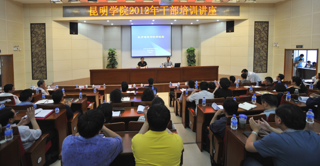4月25日下午,新葡萄官网2012年干部培训讲座在行政楼D区报告厅拉开帷幕。这次培训是在学校新一轮中层干部聘任完成后,为提升干部素质,提高干部适应工作的能力,按照缺什么、补什么的原则举办的讲座。我国高等教育知名专家、云南大学高等教育研究院院长、云南大学博士生导师董云川教授为新葡萄官网120余名中层以上干部作了题为《教育理想与教育现实》的培训讲座,讲座由学校党委孙勇副书记主持。