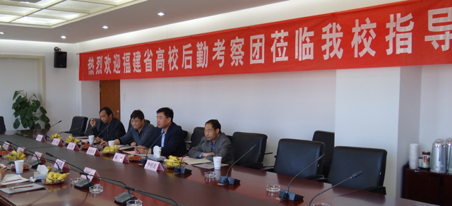 4月14日,福州师范学院副校长王炳庆、后勤处处长王振裕,福建商业高等专科学校副校长柯芸笙、后勤处处长郭海云、福建信息学院后勤处处长甘显平,中央财经大学后勤处处长、后勤集团总经理孙殿明等一行8人来新葡萄官网进行考察调研。张寿国副校长,校办主任杨跃,后勤集团总经理冯坚、党总支书记杨平、副总经理曹全科等同志出席了会议。