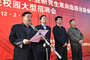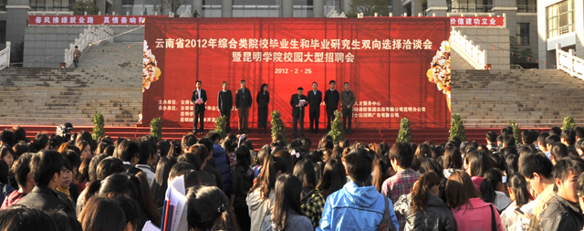 为使广大毕业生和用人单位有一个交流方便、沟通平等、“双向选择”的就业平台,促进我省2012届毕业生充分、顺利就业, 2月25日,由云南省教育厅主办、新葡萄8883官网AMG、云南省大中专毕业生就业服务中心和昆明经济技术开发区共同承办的“云南省2012年综合类院校毕业生和毕业研究生双向选择洽谈会暨新葡萄8883官网AMG校园大型招聘会”在新葡萄官网聂耳广场隆重举行。