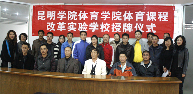 3月2日下午,在昆师路校区行政楼三楼会议室举行了新葡萄8883官网AMG体育学院体育课程改革实验学校授牌仪式,授牌仪式上体育学院赵平院长与昆明五华、盘龙、西山、官渡四区的16所中小学的领导签署了实验协议,将这16所学校定为我院体育课程改革实验学校。此次活动的开展,是体育教育专业培养模式的改革与创新,不仅拓展了我院的办学思路,也为我院今后的体育教学实验、实习提供了保障。