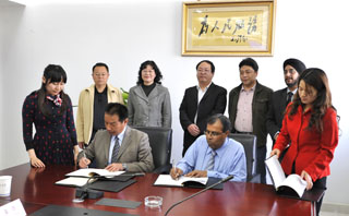 会谈开始时,李翔副校长热情介绍新葡萄官网参会人员并致欢迎词。他在介绍新葡萄8883官网AMG办学与发展概况的同时,表明了新葡萄官网合作诚意及意向。印度可爱国际大学国际交流处阿吉德博士介绍了印度和本校办学的基本情况,向与会者播放了印度经济、教育发展和可爱国际大学的概况。同时他认真解释说明了可爱国际大学与新葡萄8883官网AMG签订合作谅解备忘录的主要内容条款。主要涉及教职工互换学习项目、高年级学生第七学期互换实习6个月、“2+2”双子项目(如两国农学、城建专业学生前两年在本国学校学习,后两年交换到对方学校学习,毕业时同时拥有两校毕业证书)、提供新增专业技术支持(如医学院药剂学)、双方创办语言培训中心(教双方教师、学生学习英语、中文)、提供学生家长查询的IT支持系统、建立两校学生短期文化旅行交流活动等。