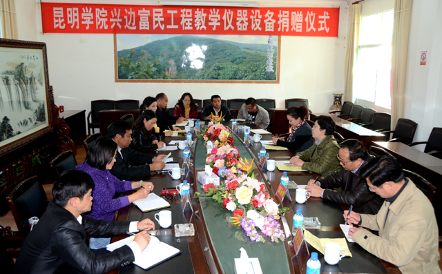 为贯彻省委、省政府关于“十二五”“兴边富民工程”工作的安排部署和要求,落实陈世波校长一行2011年11月19日至21日前往德宏州芒市调研时提出的帮扶决定,2月3日至6日,熊晶副校长带队前往芒市举行“兴边富民工程”教学仪器设备捐赠仪式,同时,应邀参加了2012中国•德宏景颇族国际目瑙纵歌节。校长办公室副主任董学荣、资产管理与设备处处长解永刚、音乐学院院长靳丽芬及相关工作人员陪同前往开展工作。
