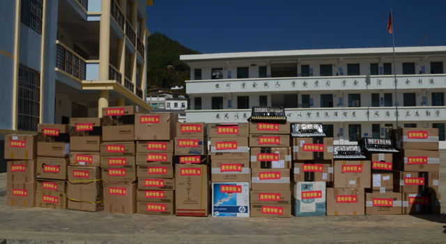 2月4日,熊副校长一行在市教育局副局长杨春潮、市教育科研中心副主任姜和志等人的陪同下,到芒海九年制国门学校进行调研,并把捐赠设备亲自送到了学校。