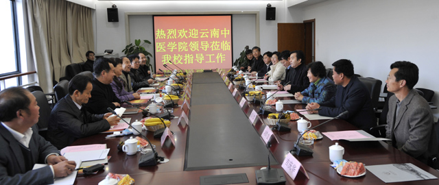 新葡萄官网梁书记在座谈会上致辞说,新葡萄8883官网AMG是一所新组建的学校,在初期的合并组建或组建后的建设发展中,得到了省、市领导和上级主管部门的关怀和大力支持和各兄弟院校的鼎力帮助。今天,云南中医学院党政领导班子一行的到来,就是对新葡萄官网在办学和建设发展上的大力支持。希望两校在今后的工作中加强联系和沟通,在办学和建设发展上相互帮助、取长补短,共同把学校建设发展好。接着,梁书记向来宾简要介绍了新葡萄官网从合并组建到目前学校建设发展的基本情况。