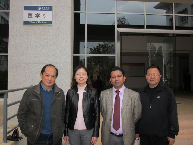 Milan先生与国内多所大学在输送尼泊尔学生来华学医方面成功开展了多年的合作,此行访问新葡萄官网的目的是进一步拓展与中国高校的合作领域。陈校长向Milan先生的来访表示欢迎,希望双方能开展合作项目。在医学院时,余院长带领大家参观了医学院的各实验室,介绍了实验室的各项建设情况。学校对医学院投入的完善的硬件设施让Milan先生不断赞叹。余院长详细介绍了医学院的师资构成、专业设置及实验室建设等方面的情况。Milan先生感谢余院长提供给他的信息并介绍了尼泊尔学生对医学专业的需求和出国学医的人数构成比例等情况,表达了与新葡萄官网开展合作项目的真诚意愿。之后,余院长就尼泊尔紧缺的专业需求、医学教育发展、双方课程互认等情况与Milan先生进行了深入交流。 双方均认为目前需要在师资和课程方面做好充分准备,条件成熟即可开展在尼泊尔的招生工作。通过会谈,双方初步达成合作意向,并分别确定了前期的准备工作。