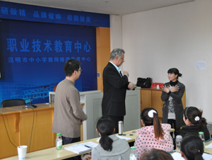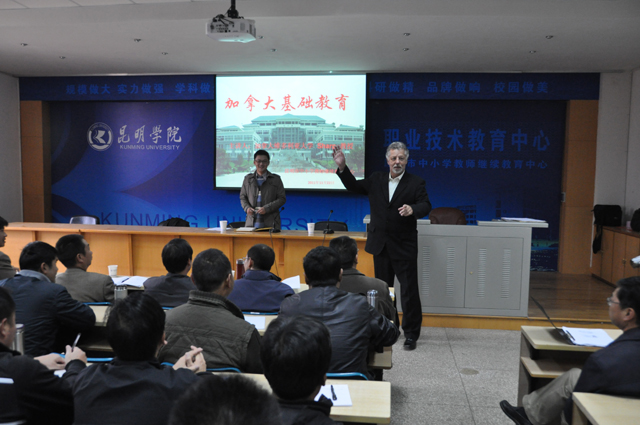 由新葡萄官网对外交流合作处邀请,加拿大维多利亚大学Sharpe博士应邀于11月22、23日到新葡萄官网,为中小学教师继续教育中心开办的昆明市中小学校长岗位培训班和云南省幼儿园园长岗位培训班进行讲座,主题分别为“加拿大基础教育”和“加拿大学前教育”,讲座图文并茂,深受学员好评。